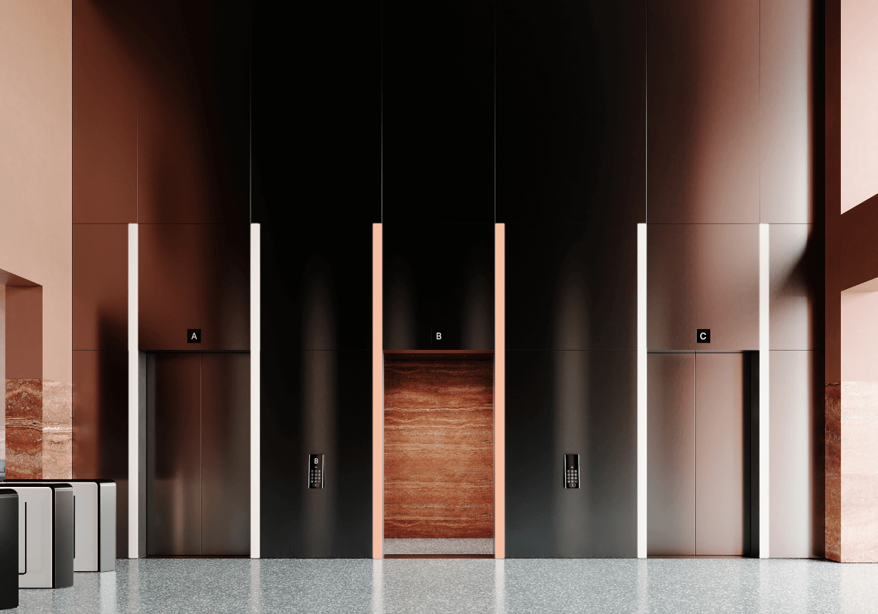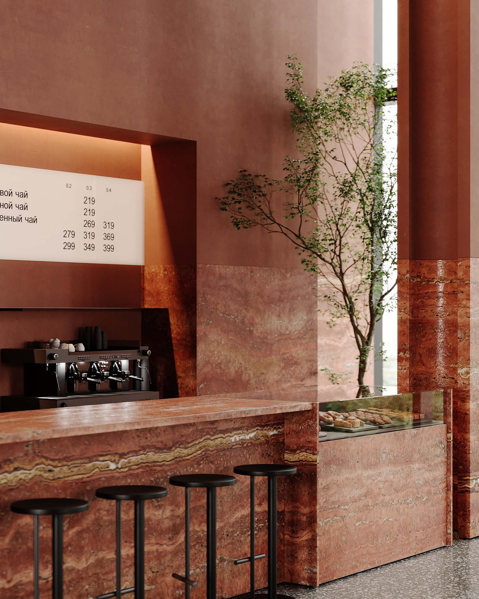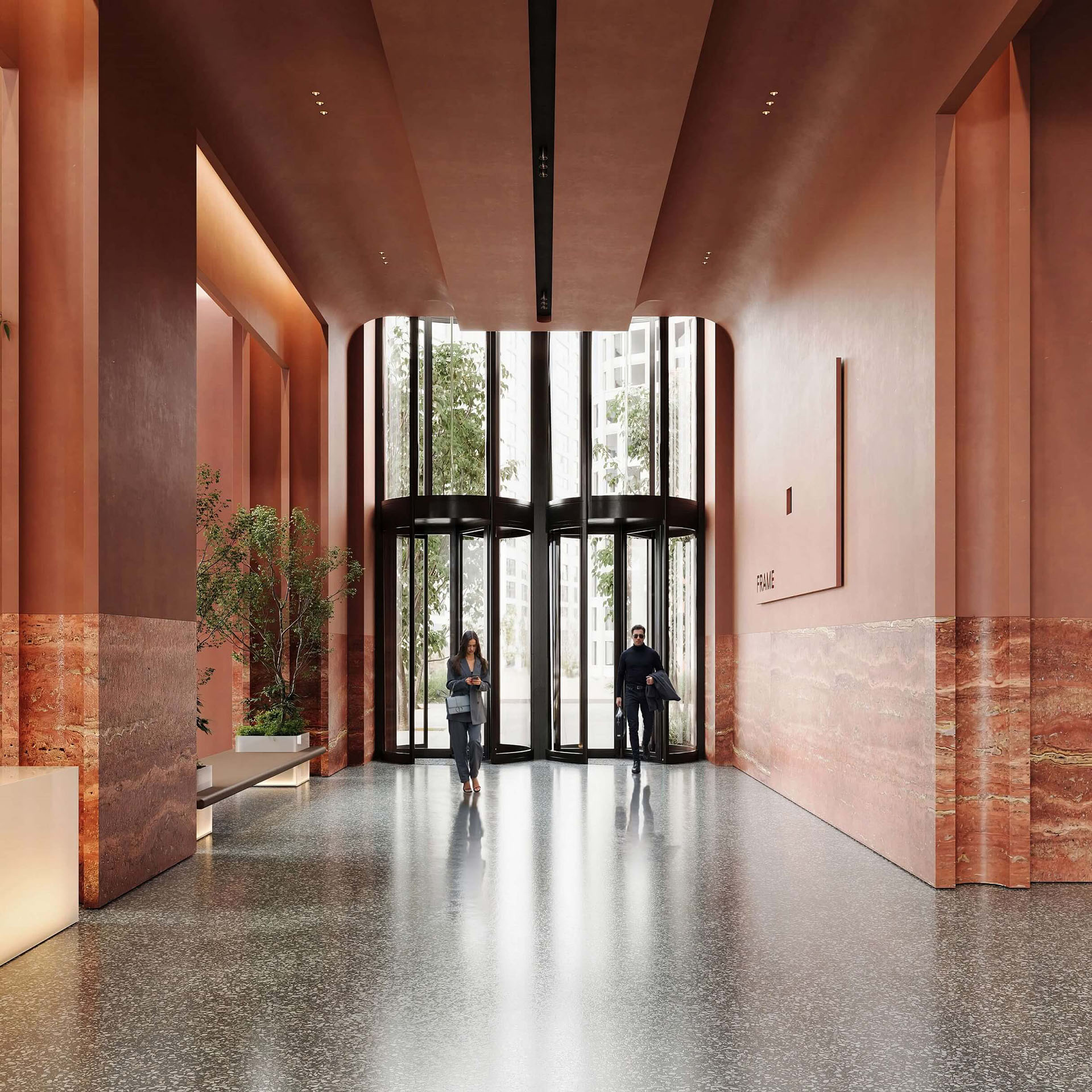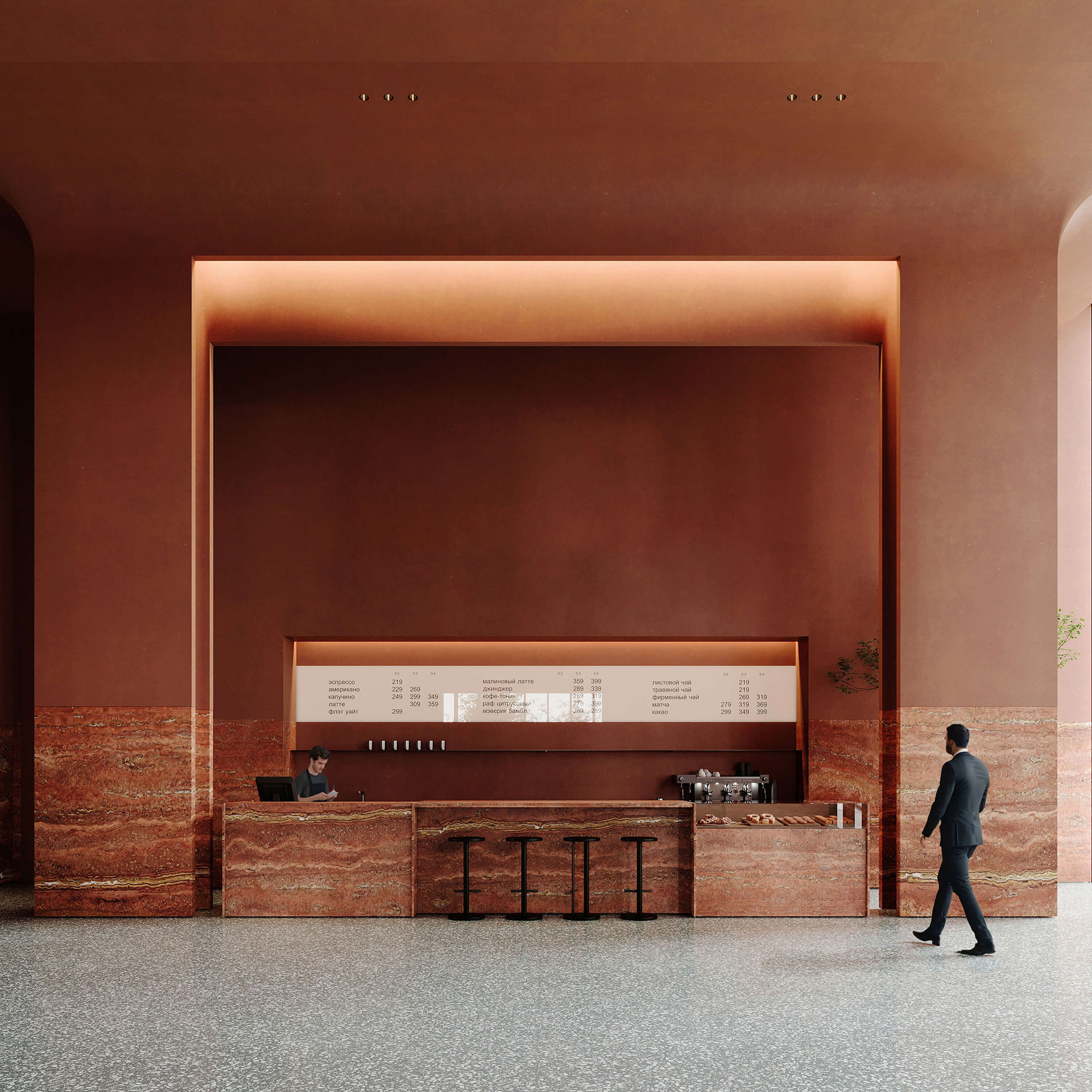Концепция интерьера входной группы от Babayants — это баланс геометричности форм, природности фактур и натуральности материалов. Высокие потолки (7,8 м) и панорамное остекление наполняют двусветное пространство естественным светом и воздухом.
